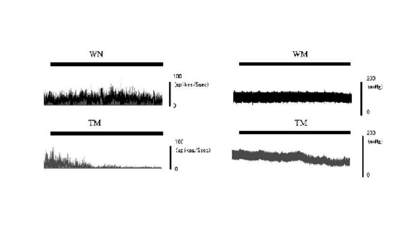 ラットの耳にイヤホンマイクを装着させて、ホワイトノイズ(50デシベル)またはトロイメライ(50デシベル)を60分間流した。その後腎臓を支配する自律神経の電気信号を測定しております。
